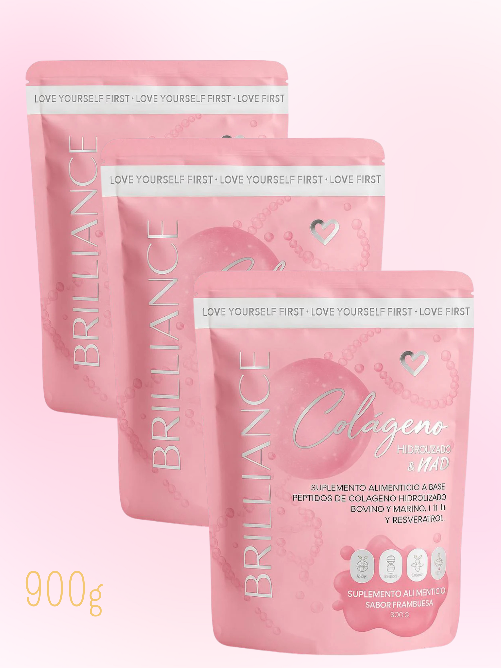 Con colágeno hidrolizado BRILLIANCE, tu piel renace: firme, radiante y visiblemente rejuvenecida. ✨ Resultados visibles de 4 a 8 semanas✨Mira el cambio real, siente la diferencia profunda.